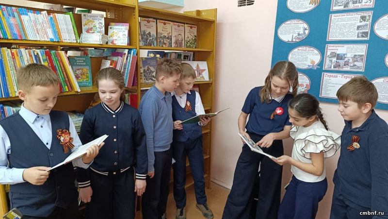 Библиотекарь рассказала детям о значимых событиях и подвигах взрослых и детей тех лет, провела обзор литературы. Юные читатели узнали о таких писателях, как С. Алексеев, А. Митяев, Л. Кассиль, К. Симонов, А. Гайдар и других.