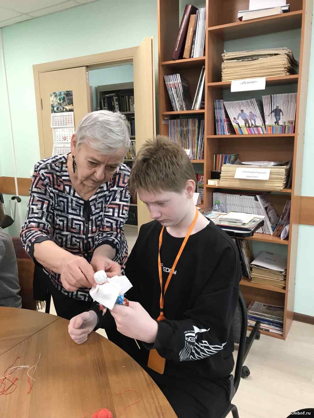 Ребята вдохновенно прочитали стихи, все вместе дружно спели зимнюю песенку, а затем началось самое интересное: под руководством педагога Татьяны Котровской прошёл мастер-класс по изготовлению куклы «Веснянка-россиянка». И взрослые, и дети, увлечённо мастерили и делились впечатлениями.