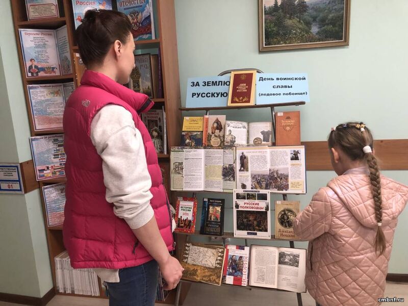 Сотрудниками библиотеки по адресу ул. Шибанкова, 24, к этой знаменательной дате подготовлена выставка-беседа «За Землю русскую». Библиотекарь рассказала о ходе битвы, о мужестве и храбрости русских воинов, зачитала отрывки из поэмы Константина Симонова «Ледовое побоище».