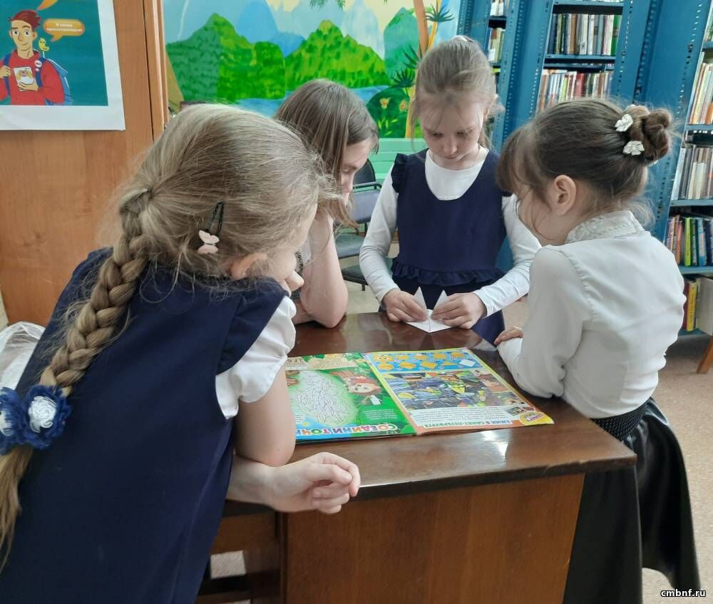 В рамках системного расписания в библиотеке д.Веселево юные читатели занимались изготовлением поделки в технике модульного оригами.