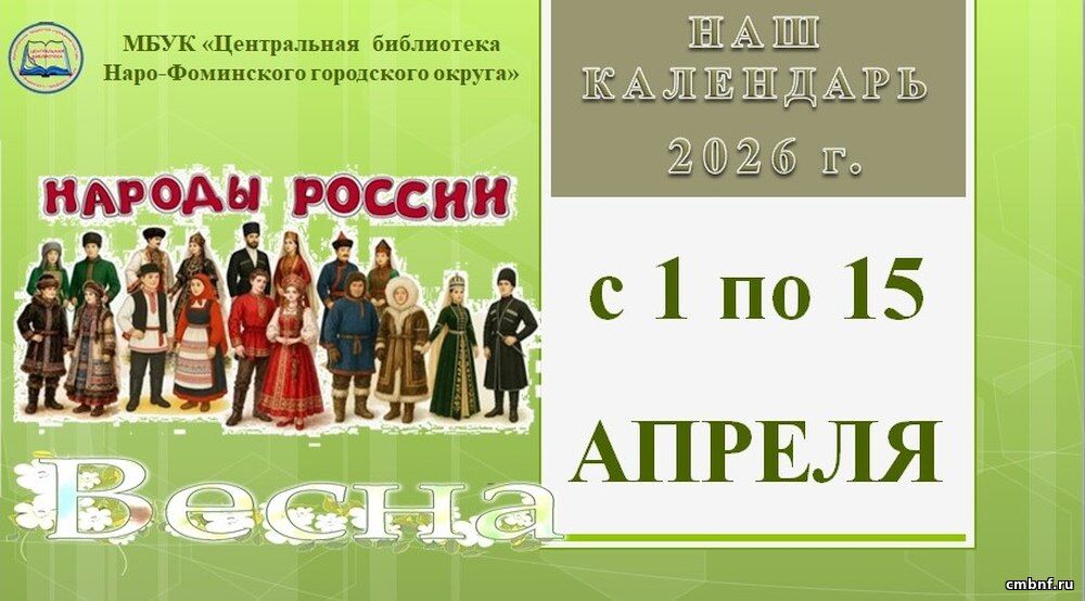 Представляем вашему вниманию «Наш календарь» знаменательных и памятных дат с 1 по 15 апреля 2026 года, подготовленный ведущим библиографом Центральной библиотеки Ириной Лукьяновой.