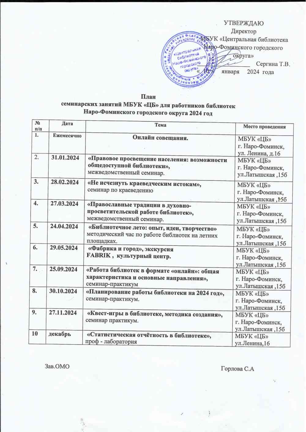 Архив семинарских занятий за 2024 год