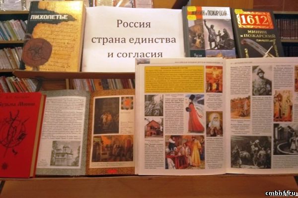 Россия – страна единства и согласияВ отделе обслуживания читателей Центральной библиотеки прошла презентация книжной выставки «Россия – страна единства и согласия», которая была посвящена государственному празднику – Дню народного единства.