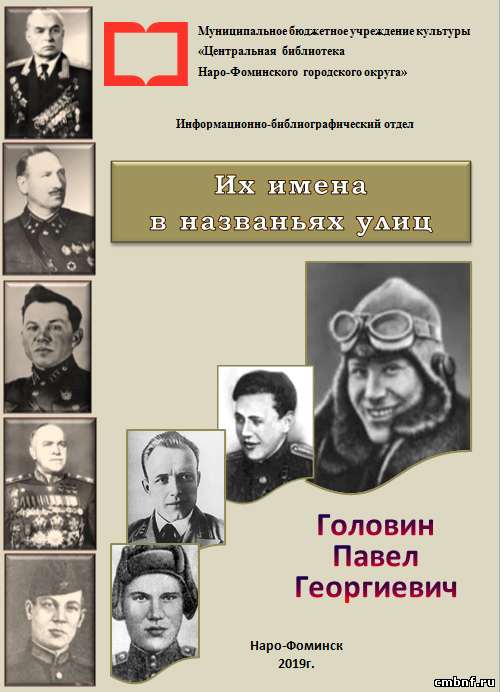 «Головин Павел Георгиевич»26 апреля исполнилось 110 лет со дня рождения первого советского лётчика, пролетевшего над Северным полюсом, нашего земляка Павла Георгиевича Головина. «На свете много есть хорошего. У каждого человека есть что-нибудь самое любимое. Что касается меня, то самым любимым делом и удовольствием я считаю – летать», - напишет уже всемирно известный пилот, Герой Советского Союза П.Г. Головин. К этой возможности летать наро-фоминский паренёк Пашка Головин шёл вопреки всем обстоятельствам. Вопреки разбивающимся при вз