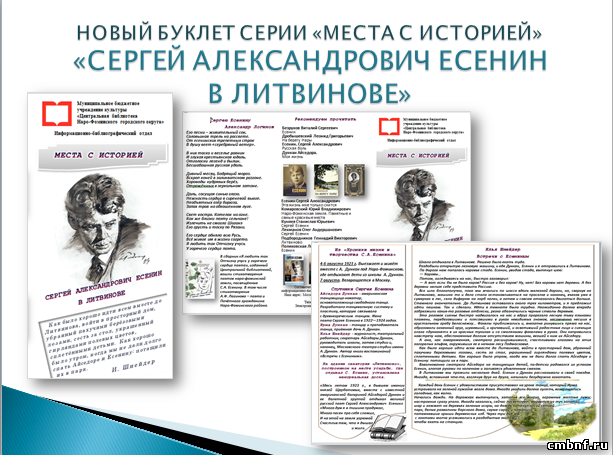 СЕРГЕЙ АЛЕКСАНДРОВИЧ ЕСЕНИН В ЛИТВИНОВЕВ 2020 году исполняется 125 лет со дня рождения великого русского поэта С.А. Есенина. Произведения Сергея Александровича необычайно популярны, любимы и востребованы в библиотеках округа. К его дню рождения ежегодно проводятся встречи и поэтические праздники, наро-фоминские поэты посвящают ему свои стихи, которые в 2015 году библиотека выпустила отдельным сборником.