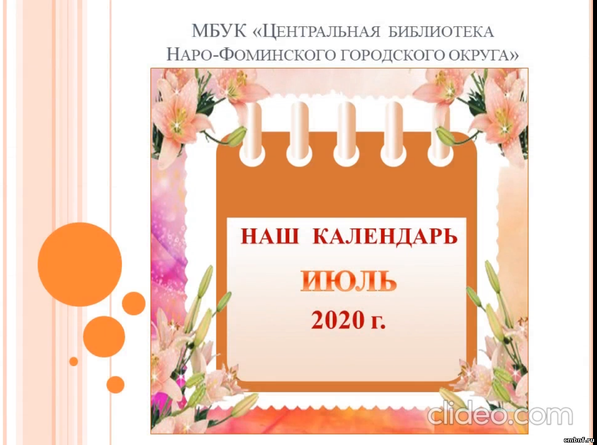 КРАЕВЕДЧЕСКИЙ КАЛЕНДАРЬ НА 1 – 12 июляИнформационно-библиографический отдел Центральной библиотеки предлагает календарь знаменательных и памятных дат Наро-Фоминского городского округа на первую половину июля.