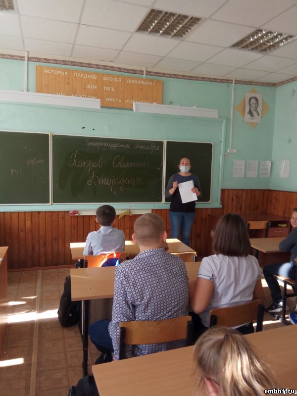 Покров Пресвятой Богородицы14 октября в Васильчиновской средней школы с учащимися 5 класса была проведена познавательная беседа, посвященная православному празднику Покрову Пресвятой Богородицы. Библиотекарь рассказала ребятам, что в этот день принято прославлять и величать Матушку Божию — Пресвятую Богородицу. Рассказала, какое чудо произошло в 910 году в Константинополе в этот день, и почему христиане с тех пор считают этот день важным в церковном календаре.