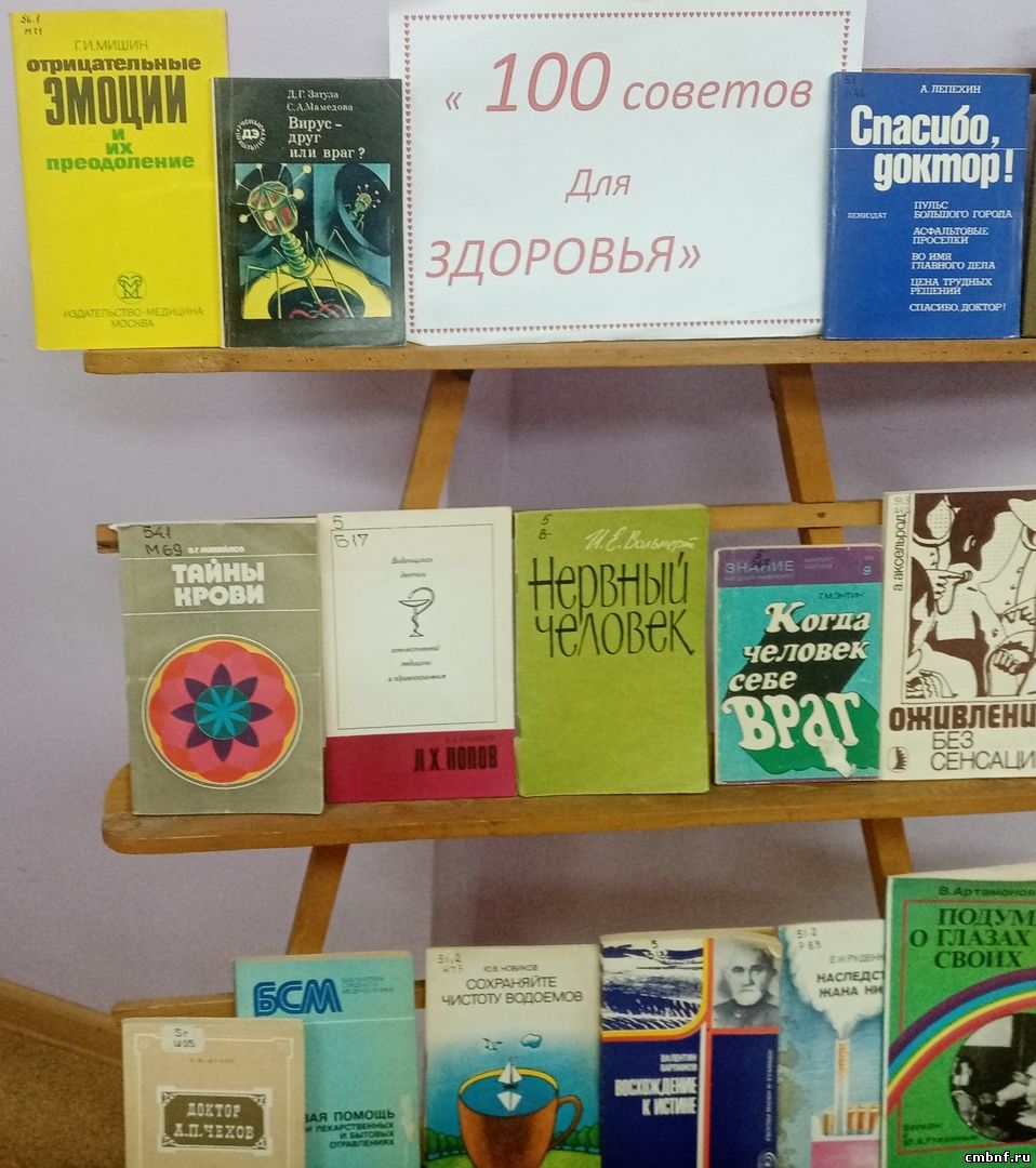 «100 советов для Здоровья»10 ноября в библиотеке д. Благовещенье была оформлена книжная выставка, «100 советов для Здоровья». Понятие «здоровый образ жизни» включает в себя целый комплекс составляющих. Это не просто диета или занятия спортом, это стиль жизни. На книжной выставки представлено большое количество изданий, дающих советы, как поддержать своё здоровье, избавиться от вредных привычек и многое другое, что обязательно пригодится тем, кто следит за своим здоровьем.