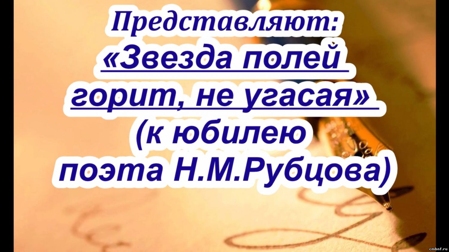 Онлайн-мероприятие «Звезда полей горит, не угасая…»К юбилею русского поэта Николая Михайловича Рубцова сотрудники библиотеки в д.Веселево и Дома культуры «Веселево» подготовили онлайн-мероприятие «Звезда полей горит, не угасая…»