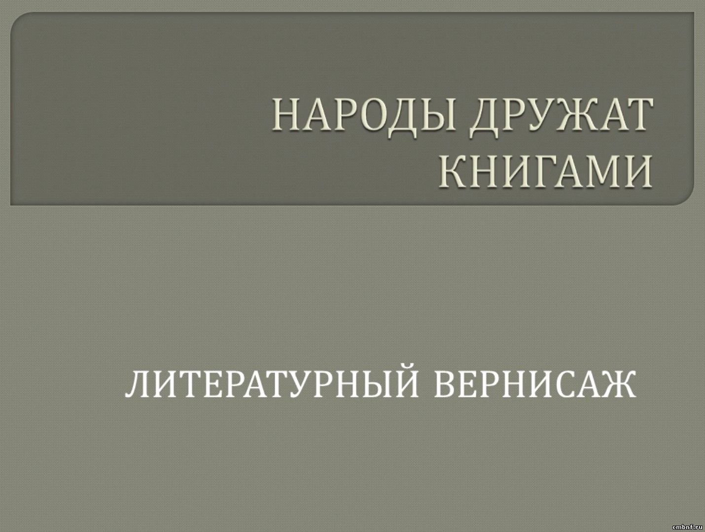Народы дружат книгамиРоссия – многонациональная страна. Более 180 народов населяют её и каждый из них по-своему уникален. У каждого своя история, культура, обычаи, особенности национальной кухни и одежда. Язык и книга – главные носители национальной культуры. Книга – это средство общения между народами, между представителями разных культур. Именно литература объединяет народы, открывает их друг для друга. У каждой культуры есть свои поэты и писатели. Познакомиться с творчеством некоторых из них предлагает библиотекарь отдела обслуживания читателей (Латышская,15Б) Аксенова Н.В.
