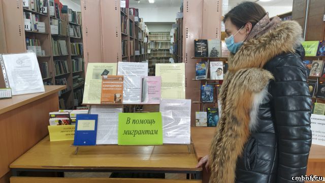 В помощь мигрантамВ рамках проведения комплекса мероприятий, направленных на социально-культурную адаптацию мигрантов и иностранных граждан, сотрудниками отдела обслуживания читателей был подготовлен информационный стенд «В помощь мигрантам». Библиотекари познакомили посетителей данной категории с базой данных «Консультант плюс», порталом «Госуслуги», сайтом Администрации города Наро-Фоминска и другими необходимыми ресурсами.
