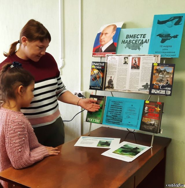 Крым и Россия всегда вместеКо дню воссоединения полуострова Крым с Россией для читателей библиотеки в д.Веселево прошел час истории «Крым и Россия всегда вместе». Библиотекарь Бурова Л. подготовила увлекательный рассказ об истории Крыма, о важных событиях в истории республики, о значении полуострова для России. Совершить виртуальную экскурсию помогла слайд-презентация «Достопримечательности Крыма», которая познакомила с самыми знаменитыми местами полуострова.