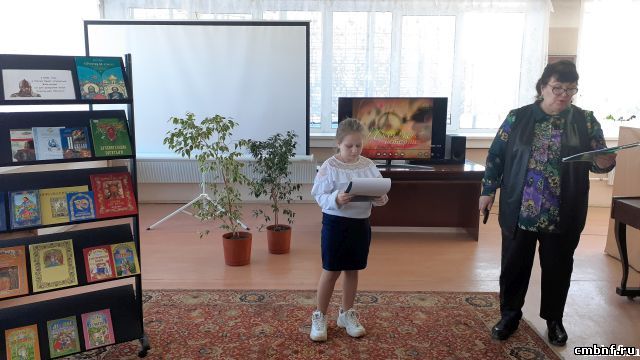 Мы в душах строим храмВесна открывает целую череду самых светлых и прекрасных праздников: Благовещенье, Пасха, День православной книги. Библиотекарь отдела обслуживания читателей (ул. Латышская, 15б) Устинова С.Н. пригласила учеников средней школы № 5 на историческо-православный экскурс. Вместе с Кеняйкиной Аленой они познакомили ребят с древнерусским князем Александром Невским, возглавлявшим русское войско во время славной битвы Ледового побоища, показали отрывок из художественного кинофильма «Александр Невский» с кадрами этой битвы.