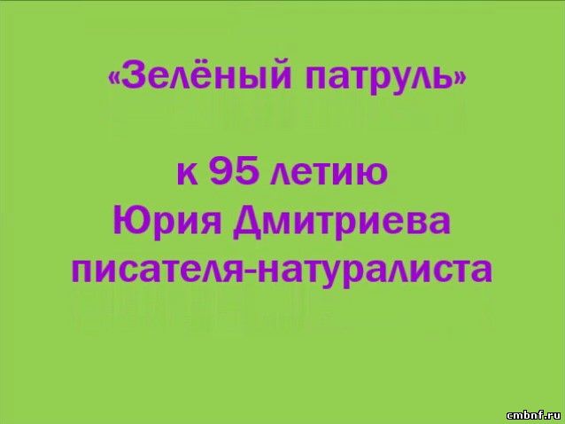 Зелёный патрульСельский отдел обслуживания читателей с. Атепцево приглашает всех на литературно-экологическое онлайн-путешествие, посвященное 95-летию писателя-натуралиста Юрия Дмитриева.