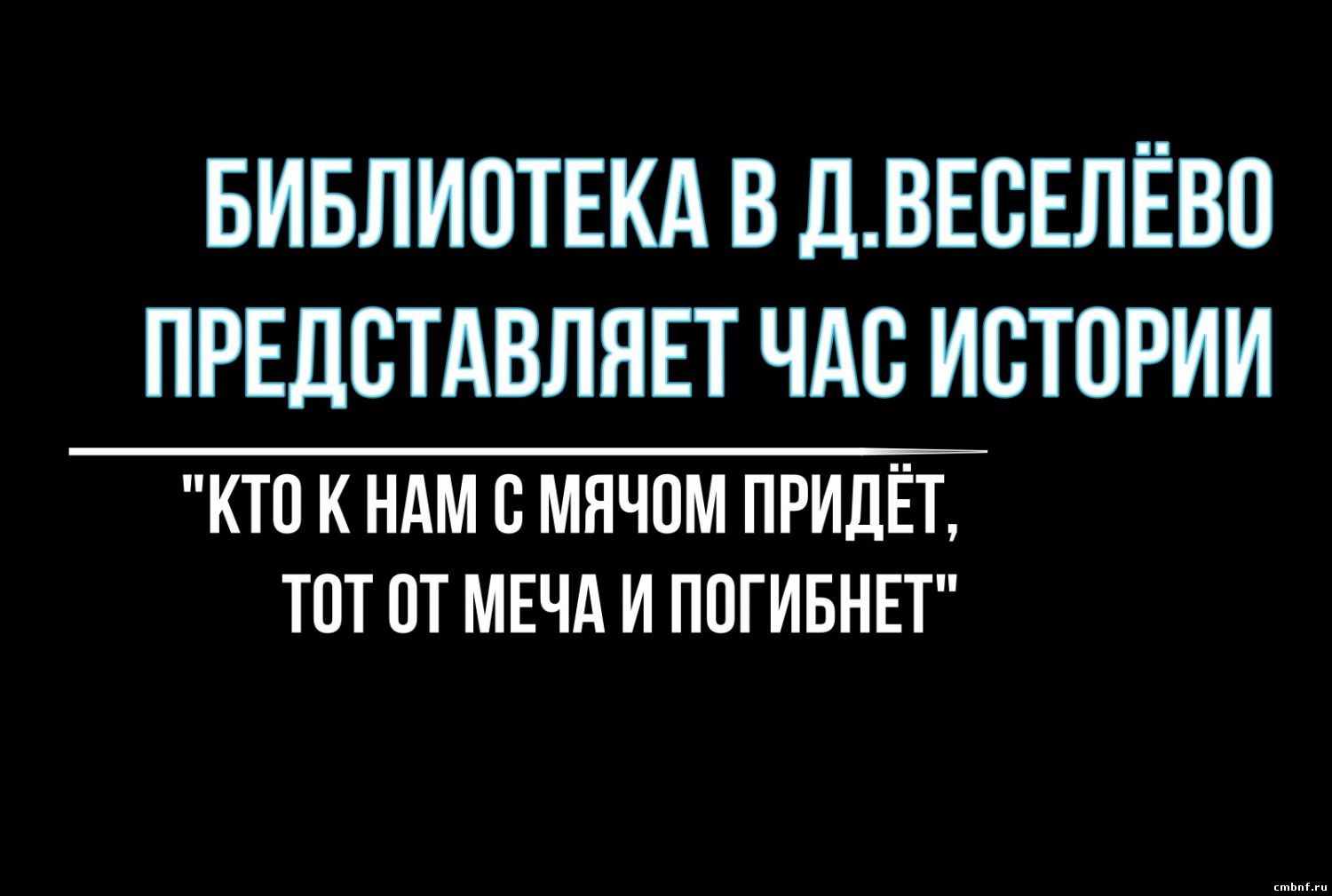 Час истории «Кто к нам с мечом придет, тот от меча и погибнет»В 2021 году исполняется 800 лет со дня рождения Александра Невского. Библиотека в д.Веселево представляет час истории «Кто к нам с мечом придет, тот от меча и погибнет», посвящённый этой значимой дате.