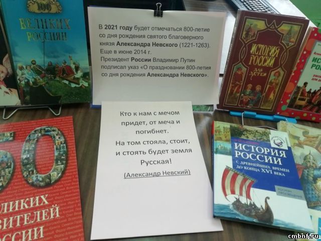 День памяти Александра Невского23 апреля в библиотеке д. Устье в рамках заседания клуба «Вместе с книгой мы растем» прошел исторический час «День памяти Александра Невского», посвященный 800-летию со дня рождения великого князя. Библиотекарь Сажина О.И. познакомила читателей с биографией исторического героя земли Русской, рассказала о подвигах знаменитого полководца. К мероприятию была подготовлена тематическая книжная выставка «Александр Невский», на ней представлены книги по истории России, в которых рассказывается о жизни и ратных подвигах святого князя Александра Невского.