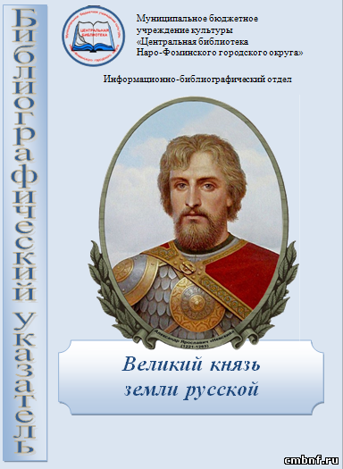 Великий князь земли РусскойКнязь Александр Невский принадлежит к числу наиболее выдающихся людей нашего Отечества. Полководец, не потерпевший ни одного поражения на поле брани, он вошел в историю и как мудрый и осторожный политик, сумевший уберечь Русь в тяжелейший, переломный момент ее истории. В 2021 году исполняется 800 лет со дня рождения князя, полководца и великого святого земли русской Александра Невского. Президентом РФ В.В. Путиным 23 июня 2014 года подписан Указ «О праздновании 800-летия со дня рождения князя Александра Невского». Предлагаем вашему вниманию 2-е издания библиографического указателя «Великий князь земли русской», переизданного к 800-летию со дня рождения великого полководца Александра Невского библиографом информационно-библиографического отдела Лукьяновой И.А.