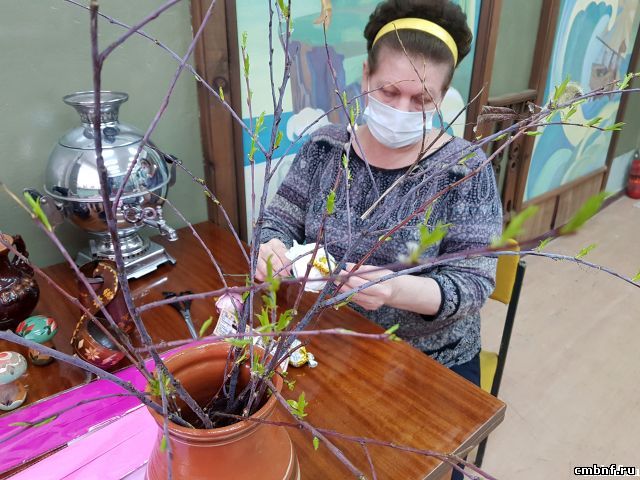 "Рукам работа - сердцу радость"В клубном формировании "Рукам работа - сердцу радость" прошла подготовка к Светлому Христову Воскресенью. Занятия прошли в фольклорном уголке "Русская изба" отдела обслуживания читателей (ул. Латышская, 15б). Участники познакомились с книгами, рассказывающими о православных праздниках, и изготовили пасхальный конфет-букет.