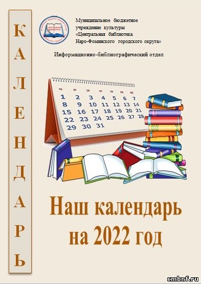 Наш календарь на 2022 годБиблиографом информационно-библиографического отдела Лукьяновой И.А. подготовлен информационный буклет «Наш календарь на 2022 год». В издание вошли знаменательные и памятные даты на 2022 год: юбилеи писателей, общественных деятелей, учёных, известных людей мира искусства, культуры, спорта, а также список книг и произведений – юбиляров. Вся информация в календаре располагается по месяцам, а внутри в хронологической последовательности событий и дат. Буклет рекомендован библиотекарям и пользователям библиотек.