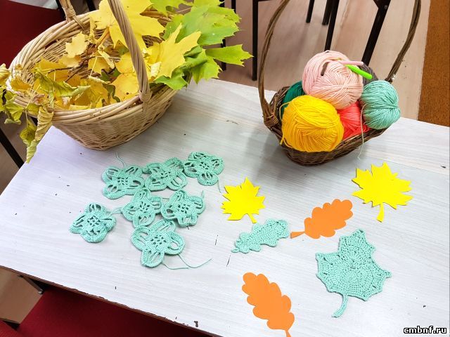 Рукам работа – сердцу радостьУ участниц творческих занятий клубного формирования «Рукам работа – сердцу радость», увлечённых темой золотой осени, возникла идея освоить вязание ярких осенних листочков крючком. Их можно использовать и как элементы декора, и как аксессуары. Тем более, что сегодня в моде декорирование вязаной одежды растительными мотивами. Вот такая нарядность получается у наших рукодельниц. Так что прогоним лёгкую осеннюю тоску и начнём творить красоту.