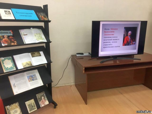 Холмогорский самородок(к 310-летию со дня рождения М.В. Ломоносова) В отделе обслуживания читателей (ул. Латышская,15б) прошёл вечер-портрет «Холмогорский самородок», посвящённый 310-летию со дня рождения М.В. Ломоносова. Жизненный путь русского учёного - сплошная полоса получения знаний, открытий и практических опытов. Кислота, градусник, горизонт, иллюминация, мозаика – все эти термины ввёл в лексикон русского человека Михаил Васильевич. Ломоносов создал химическую лабораторию в Петербурге, раскрыл загадку северного сияния, совершенствовал телескоп, занимался историей и стихосложением. Присутствующие не только узнали много интересных фактов из биографии учёного, но и стали участниками тематической инсценировки по стихотворению М.В. Ломоносова «Случилось вместе два астронома…».