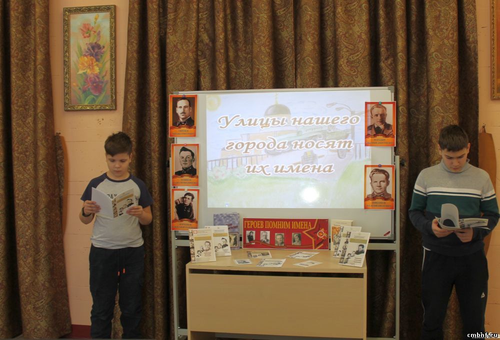 Улицы нашего города носят их имена«Улицы нашего города носят их имена» - под таким названием в сельском отделе обслуживания читателей в д.Головково прошел час истории. Мероприятие началось с рассказа об истории Великой Отечественной войны. Юные читатели совершили исторический экскурс по улицам города Наро-Фоминска, которые названы в честь героев Великой Отечественной войны 1941 - 1945 годов. Ребята узнали много нового об именах тех людей, в честь которых названы улицы нашего города, так как в каждом названии чья-то судьба, героический подвиг, самопожертвование во имя Родины, ради жизни будущих поколений. Вниманию детей была представлена видеопрезентация и комплект буклетов «Их имена в названьях улиц», подготовленный информационно-библиографическим отделом.