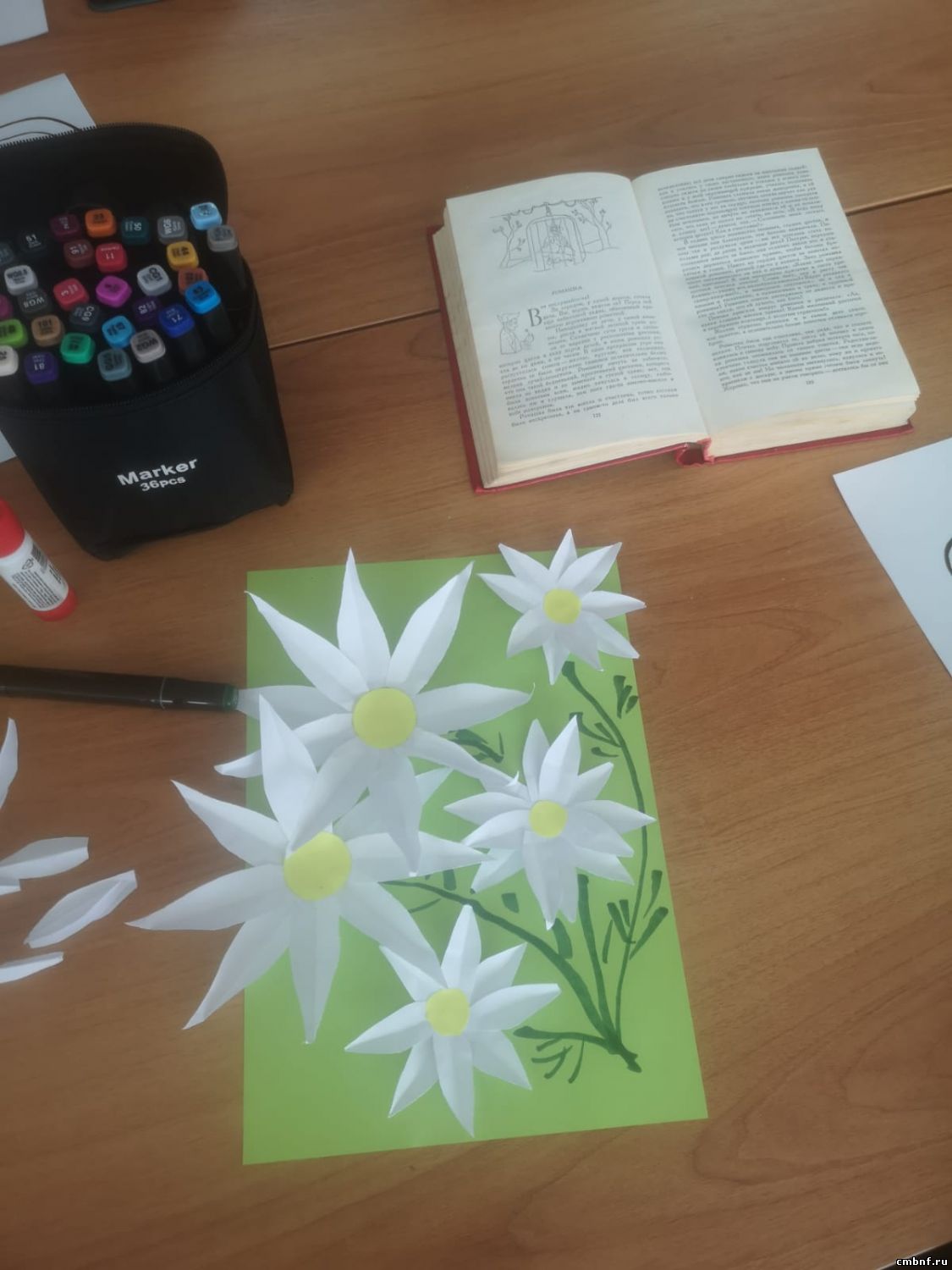 Веселая мастерская27 июля ребята, пришедшие в библиотеку, попали в царство Цветов. В этом цветочном королевстве все подданные следят за собой, за окружающей средой и не любят детей, которые плохо относятся к природе, срывают цветы и ветки деревьев, топчут газоны, мусорят там, где ходят. Дети с удовольствием послушали сказку Г.Х. Андерсена «Ромашка», прочитанную библиотекарем отдела обслуживания читателей (ул. Маршала Жукова, 10) Кобытевой А.А. Трогательная история о маленьком и скромном цветочке, чья доброта, любовь и благородность так и не смогли спасти от гибели бедную птичку. Закончилось мероприятие увлекательным мастер-классом, где совместными стараниями, с помощью клея, ножниц и цветной бумаги, ожил букет полевых ромашек.