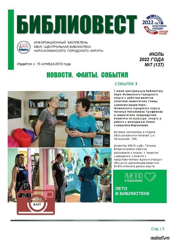«БИБЛИОВЕСТ» №7 (137).Информационно-библиографическим отделом составлен и выпущен очередной информационный бюллетень о библиотечной жизни «БИБЛИОВЕСТ» №7 (137)