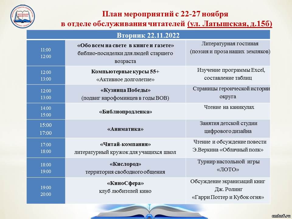 Отдел обслуживания читателей (ул. Латышская, д.15б) приглашает