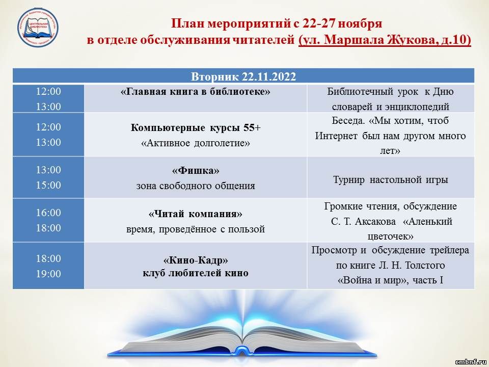Отдел обслуживания читателей (ул. Маршала Жукова, 10) приглашает
