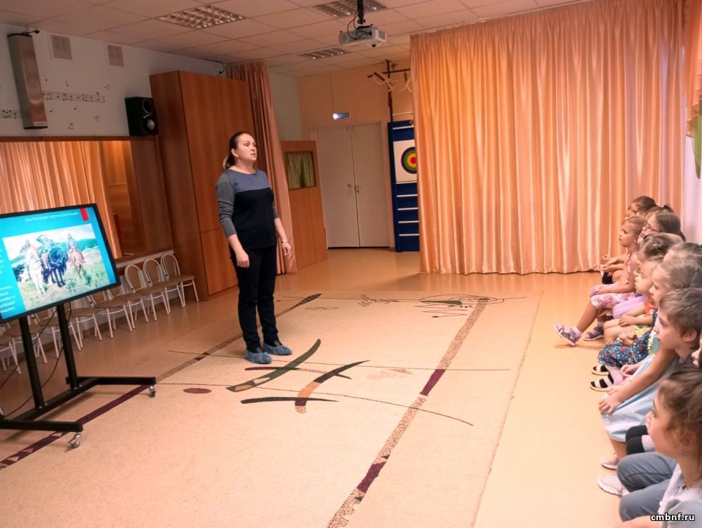 Мир русских былин5 декабря для детей подготовительной группы детского сада в п. Васильчиново в рамках проекта «Сказка перед сном» прошла тематическая беседа «Мир русских былин». Библиотекарь рассказала ребятам о русских былинах. Посмотрев презентацию, дети узнали о самых известных богатырях на Руси, какие они были, чем прославились. Очень интересно было рассмотреть необычные доспехи богатырей - кольчугу, шлем, булаву, меч.