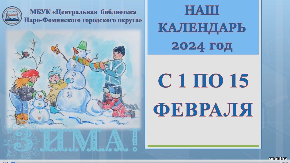Наш календарь с 1 по 15 февраляПредставляем вашему вниманию «Наш календарь» знаменательных и памятных дат с 1 по 15 февраля 2024 года, подготовленный библиографом информационно-библиографического отдела Ириной Лукьяновой. На страницах календаря читатели познакомятся с подборкой интересной информации, посвящённой Году семьи.