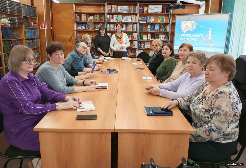 Рецепт отличного настроенияБиблиотекари отдела обслуживания читателей (ул. Маршала Жукова 10) вели разговор с участниками группы здоровья о самопознании и позволении, о том, что приносит в жизнь радость и дает состояние счастья. Мы размышляли о предназначении человека, о каждодневном выборе, о доверии себе и миру и делились рецептами хорошего настроения.