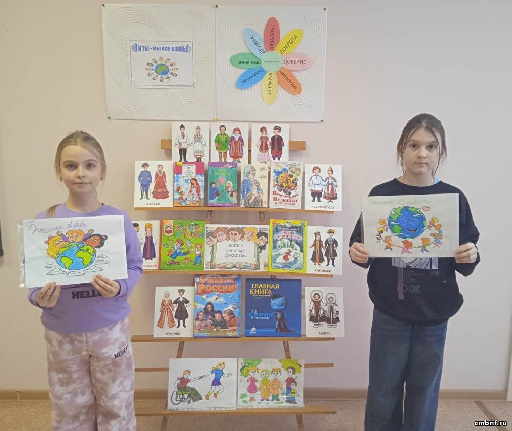 Я и ты – мы все равны!В библиотеке д. Шустиково прошло творческое мероприятие «Я и ты – мы все равны!». Библиотекарь познакомила ребят с понятием слова толерантность, вспомнили пословицы о дружбе, побеседовали о том, что Россия – наш огромный, общий дом, что люди должны жить в мире и дружбе.