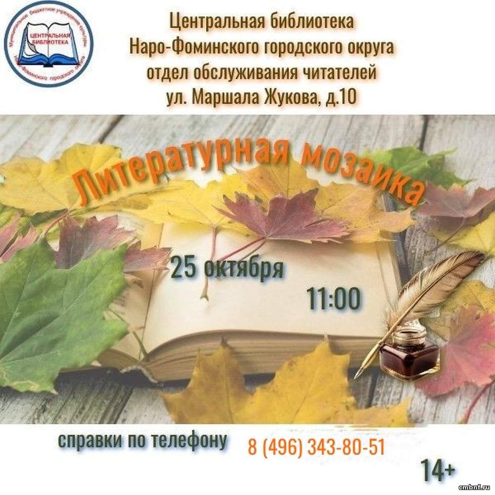 Дорогие поэты и любители искусства слова!Мы рады пригласить вас принять участие в поэтическом конкурсе "Литературная мозаика"! Номинации: *"Мы о войне стихами говорим" к 80-летию Победы в Великой Отечественной войне *"Земля, что дарит вдохновенье" стихи-гимн Наро-Фоминска к 100-летию города Условия участия: 1 группа: 14-18 лет 2 группа: 19 лет и старше Как подать заявку: Отправьте свои произведения в количестве двух стихотворений на электронную почту nfcmb@yandex.ru в срок до 21 октября. Не забудьте указать ваше имя, возраст и контактные данные. Победителей и призёров ждут памятные дипломы и грамоты! Не упустите шанс поделиться своим талантом и внести вклад в сохранение исторической памяти города! С нетерпением ждём ваши работы!