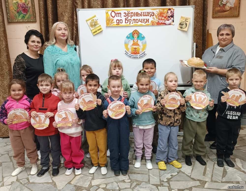 От зернышка до булочкиВ рамках празднования Всемирного дня хлеба в библиотеке д. Головково для воспитанников дошкольного отделения лицея имени Героя России В. Волошиной прошло познавательное и творческое мероприятие «От зернышка до булочки».
