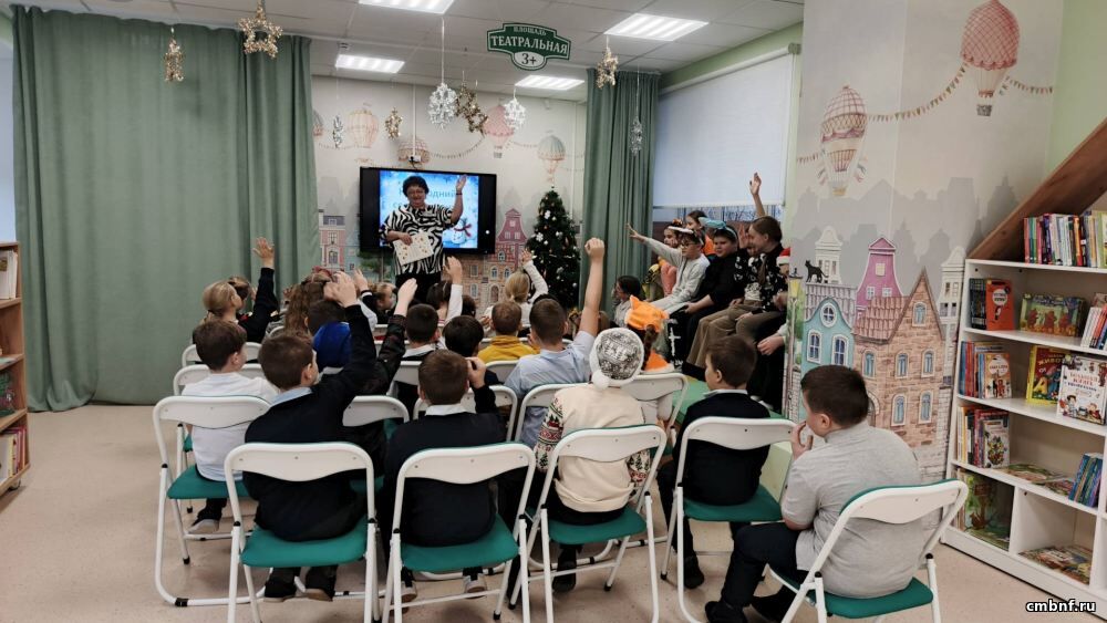 Новогодний соображариумПраздничным настроением зарядились ученики школы № 5, участники квиза «Новогодний соображариум», который подготовили для них библиотекари «Книгополиса». Эрудицию и смекалку пришлось применить игрокам. Игра состояла из нескольких конкурсов: «Новогодние приключения», «Шеф-Повар», «Песенный снегопад», «К нам гости пришли», «Апельсиновый бум» и «Подарочный».