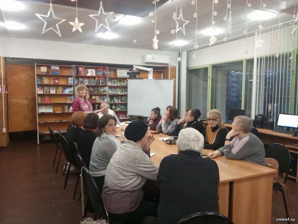 Новогодняя встречаВ отделе обслуживания читателей по адресу ул. Маршала Жукова, д.10, заседание литературного объединения «Волшебная строфа» прошло в праздничной обстановке. Поэты читали стихи, подводились творческие итоги, звучали поздравления с Новым годом и пожелания.