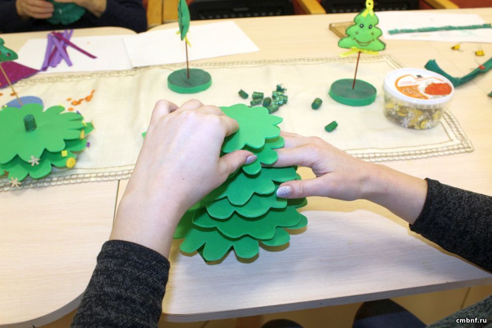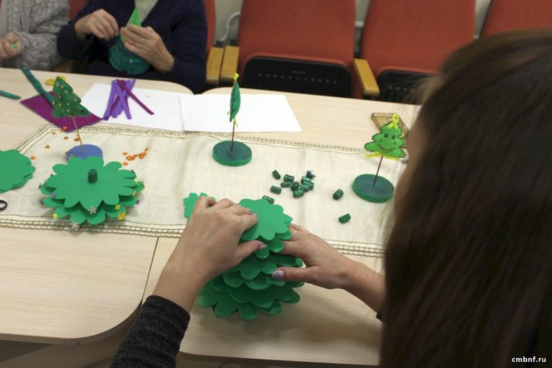 Библиотекарь А. Тихонова и художественный руководитель С. Шохина провели мастер-класс «Новогодняя игрушка».