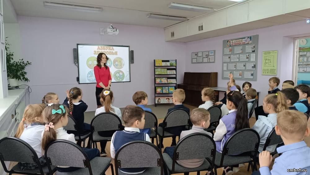 Библиотекарь отдела обслуживания читателей (ул. Латышская, 15б) Наталья Никифорова поговорила с первоклассниками об основах здорового образа жизни на беседе у книжной выставки «А, В, С – азбука здоровья».