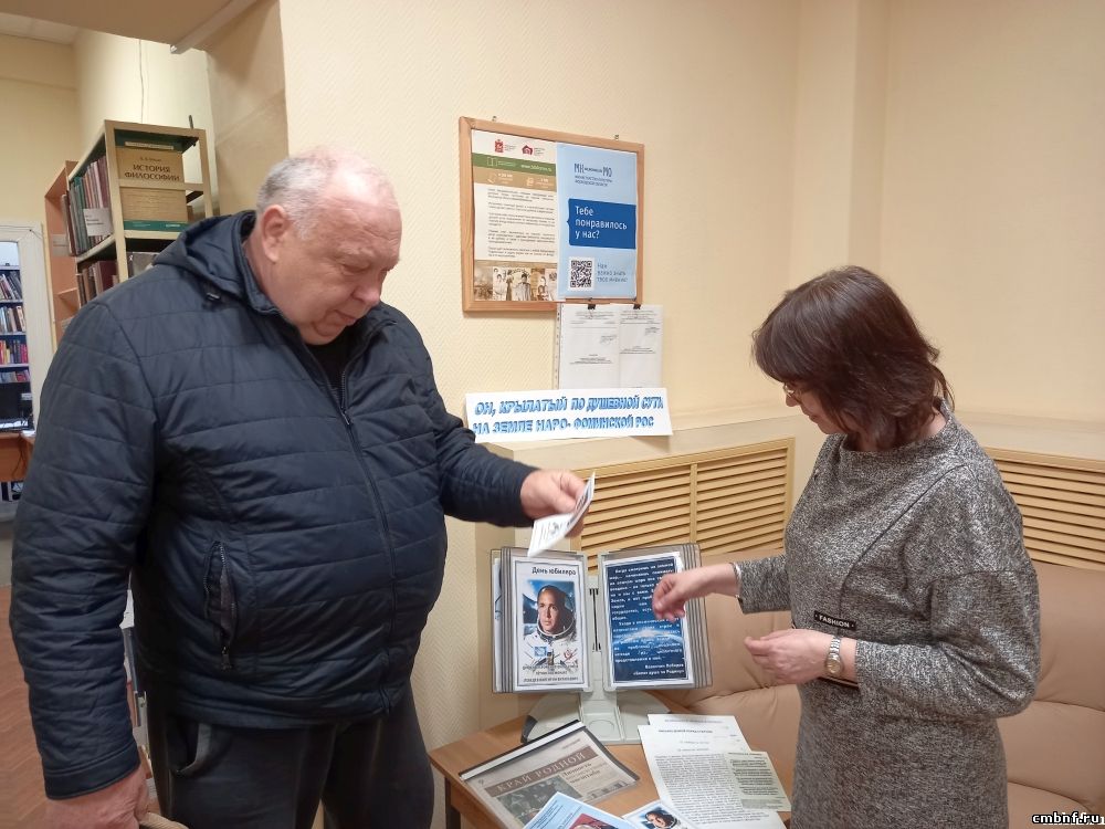 К 80-летию дважды Героя Советского Союза, лётчика-космонавта СССР, Почётного гражданина Наро-Фоминского района В.В. Лебедева в Центральной библиотеке впервые проведена акция «День юбиляра». Оформлен информационный уголок «Он, крылатый по душевной сути, на земле наро-фоминской рос», составлены и выпущены открытки «Лебедев Валентин Витальевич», которые вручались в «космические» дни с 12 по 14 апреля всем посетителям библиотеки. Сотрудники информационно-библиографического отдела рассказывали читателям о жизни и работе В.В. Лебедева, о его книгах и многочисленных публикациях….