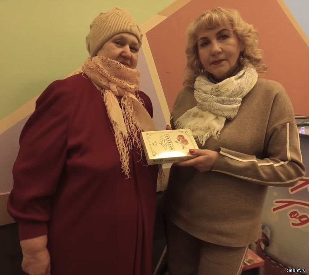 Библиотекарь сельского отдела обслуживания читателей пос. Архангельский Елена Путилова поздравила с праздником участников программы «Активное долголетие в Подмосковье» и вручила небольшие подарки.