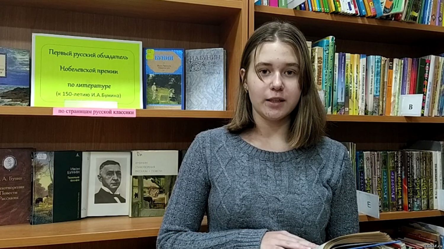 МБУК "Центральная библиотека" Наро-Фоминского г.о. (Отдел обслуживания читателей) присоединяется к литературной эстафете «По волнам любимых строк И.А. Бунина». Германович Анастасия (средняя школа № 7, 8 А класс) читает отрывок из рассказа «Антоновские яблоки»