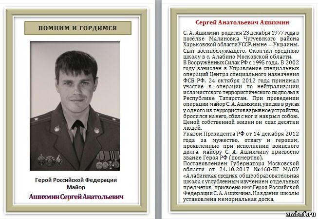 Пусть это будет ещё один шаг к тому, чтобы имя Сергея Ашихмина жило вечно в памяти и сердцах всех жителей Наро-Фоминского городского округа.