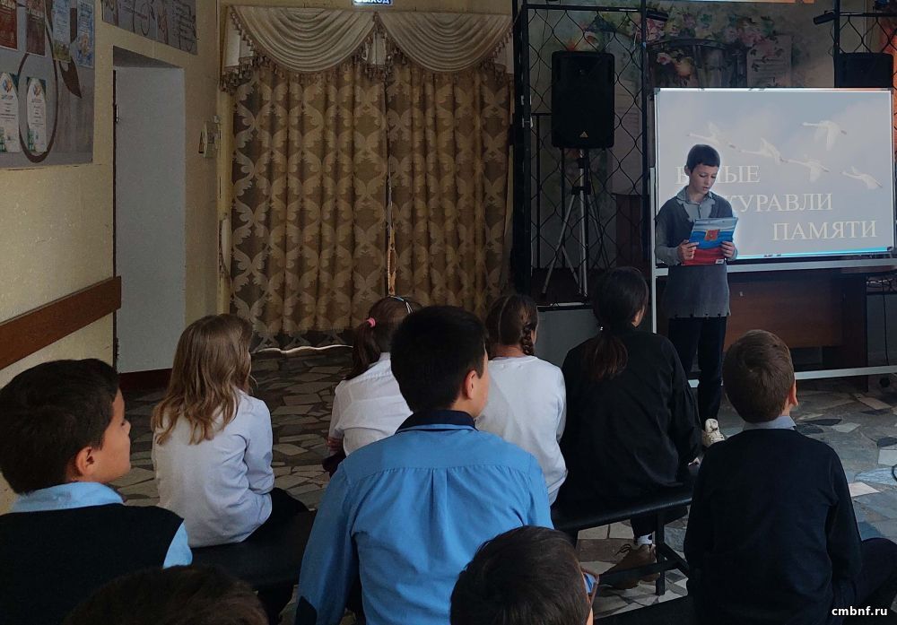 В этот день в библиотеке д.Головково состоялся видеоэкскурс «Белые журавли памяти», в память о тех, кто положил свои жизни на полях сражений. С помощью презентации ребята познакомились с историей праздника, учрежденного народным поэтом Дагестана Расулом Гамзатовым, узнали, как появилось стихотворение и песня «Журавли» на слова автора. Посмотрели галерею памятников, где журавли используются как символ скорби по воинам, не вернувшимся с войны. Завершилось мероприятие минутой молчания в знак глубокого уважения и скорби по всем погибшим.