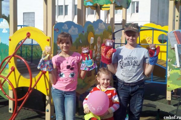 Украшенная разноцветными надувными шарами, она стала импровизированной сценой для театрализованного кукольного действия сказки «Три медведя», которую показали помощники библиотеки, юные читатели-волонтёры Ордовы Мария и Дмитрий. Присутствующие на площадке дети с удовольствием посмотрели кукольный спектакль, а потом увлечённо листали страницы детских книжек.