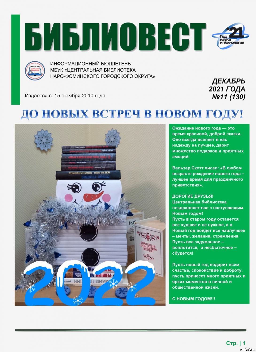 Информационно-библиографическим отделом составлен и выпущен заключительный в этом году, новогодний информационный бюллетень БИБЛИОВЕСТ №11(130)