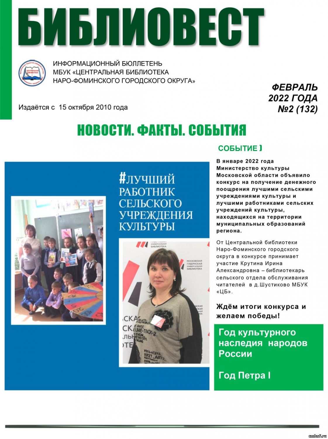Информационно-библиографическим отделом составлен и выпущен первый информационный бюллетень о библиотечной жизни БИБЛИОВЕСТ №2(132)