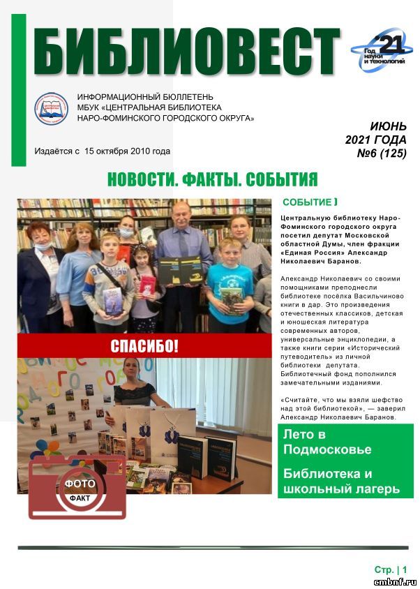 Информационно-библиографическим отделом составлен и выпущен очередной информационный бюллетень о библиотечной жизни БИБЛИОВЕСТ №6(125)