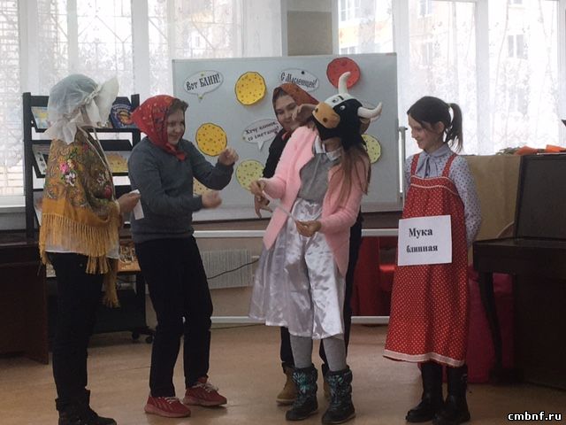 Весёлый праздник Масленица отмечается русским народом в начале весны. В дни масленичной недели каждый старается вспомнить народные традиции, вдоволь покушать румяных блинов и повеселиться. В отделе обслуживания читателей (ул. Латышская,15б) посетителям библиотеки было предложено принять участие в игровой программе «Блинов гора - зима со двора». Присутствующие не только узнали, как назывались все дни масленичной недели, но и приняли участие в играх, в которые издавна играли на Руси в эти дни. Ребятам были предложены различные конкурсы: «Блинная викторина», «Масленичное гадание». Ведущие, библиотекари